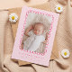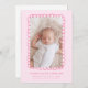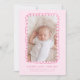 Cartão de anúncio branco e doce de nascimento com quadro fotográfico desenhado à mão, em linha rosa-rosa.