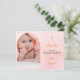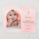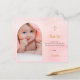 Um cartões de agradecimentos de batismo moderno e elegante. Um fundo cor-de-rosa com brilhos de ouro, pontos. Personalize e adicione sua foto da criança, obrigado nota e nome. Quadro de fotos em arco