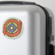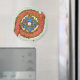 Imagem do azulejo em vermelho, azul n' branco sobre ímã redondo grande