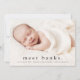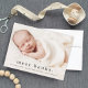 Um doce anúncio de nascimento fotográfico com o nome moderno no topo cheio sangrou foto horizontal da paisagem. A parte traseira tem duas fotos adicionais que apontam um cabeçalho de nome de cheio grande e uma mensagem pessoal da família.