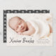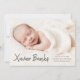 Um doce anúncio de nascimento de fotos com o nome moderno do roteiro no topo do cheio sangrou uma foto horizontal da paisagem.