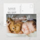 Apresentando a tipografia moderna com as palavras "Eu cheguei" Personalizou este cartão-postal elegante e moderno de anúncio de nascimento de fotos de bebês. Compartilhe a foto de seu recém-nascido e envie sua gratidão e alegria ao mesmo tempo, texto personalizável, estatísticas de natalidade nas costas com seu endereço e nomes.