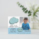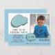 Chamada Azul de Cartoon Bubble Boy Foto Aniversário. Convite de aniversário personalizável para seus amigos e família. Carregue sua foto e personalize o cartão com seu texto. O cartão tem um quadro de nuvem azul e um esquema de cores azul e branca. Excelente como convite de aniversário para a festa de aniversário do menino.