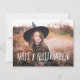 Cartão com fotos de cheio de Halloween apresentando sua foto com um gradiente desvanecido para realçar a tipografia do na moda e seu texto. Vem com um padrão de teia de aranha no fundo.