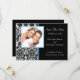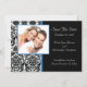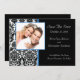 Anuncie o seu futuro casamento com as nossas Cartões de Anunciamento "Salvar a Data", com uma bela cor damasco preto e branco, com um quadro de fotos azul real cortado. Basta adicionar suas informações e fotos do casamento e você está pronto para ir! Carimbos de correio e selos de envelopes disponíveis em nosso compro