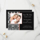 Anuncie o seu futuro casamento com as nossas Cartões de Anunciamento Save The Date apresentando uma bela cor damasco preta e branca com uma imagem de cor de pêssego aparada. Basta adicionar suas informações e fotos do casamento e você está pronto para ir! Carimbos de correio e selos de envelopes disponíveis em nosso compro