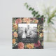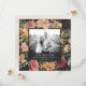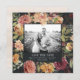 Moonlight Garden salve o cartão de data em um formato quadrado único armação sua foto de noivado favorita com uma borda de flores pintadas a aquarelas em tons de blush autunnal, burgundy e marsala com folhagem verde escura. Um rico fundo fora do preto adiciona profundidade e elegância para o outono e casamentos no inverno. Personalize com seus nomes, data do casamento e local usando os campos fornecidos.