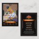 Crie um cartão de troca único e memorável para comemorar um jogador de futebol americano de destaque! Este design personalizável apresenta um elegante esquema de cor laranja e preto com um fundo preto texturizado, fazer-o perfeito para as estatísticas e imagens de qualquer jogador.