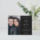 ** SATIN PAPER É PAPEL FINO. ATUALIZE O PAPEL PARA OBTER UM PAPEL MAIS ESPESADO. TEM UMA OPÇÃO PARA ENVELOPES. *** Economize dinheiro em convites com este convite menor que tem uma opção para envelopes. Prepare seus hóspedes para a incrível recepção de casamento com seu convite para o casamento da caligrafia do Side Photo Mod Elegant. Quer uma versão maior? Veja a nossa coleção de Casamentos Fotográficos para obter cartas. https://www.zazzle.com/collections/black_white_calligraphy_photo_simple_invitations-119957073450173811?rf=238937196885903396