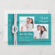Cartão russo com tema náutico. O fundo tem uma textura de tartaruga ou de madeira de lacre. Um nó náutico toca com as palavras "casando" de uma forma fofa. Duas fotos do casal estão no centro deste design que chama a atenção. Este cartão é modesto e unisexo. Perfeito para um casamento náutico, um casamento na praia ou um casamento de destino. Excelente para amantes de barco e marinheiros.