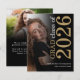 Um valor para o alternativo do ORÇAMENTO em tamanho menor de 4,5 x 5,6" de semirbrilho de 110 lbs, que é de espessura semelhante a um cartão postal (no entanto, não é adequado para uso como cartão postal). POR FAVOR, NOTE que existe UM por folha. Foto do orçamento 2 Anúncio de graduação Dourado 2023 preto. Uma na moda e design de fotografia para anunciar a notícia do formando da classe do mais velho, com na moda grande tipografia girada e do lado direito no topo, em preto e ouro. Personalize facilmente o resto do texto, incluindo a sua mensagem no verso. Substitua as fotos nos modelos de cada lado por suas próprias fotos.