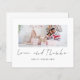 Um valor para o alternativo do ORÇAMENTO em tamanho menor de 4,5 x 5,6" de semirbrilho de 110 lbs, que é de espessura semelhante a um cartão postal (no entanto, não é adequado para uso como cartão postal). POR FAVOR, NOTE que existe UM por folha. Foto moderna de Obrigados e amor de Natal. Um script de estilo manuscrito de na moda set para Amor e Obrigados e personalize com seus nomes e mensagens no verso. substitua a foto de exemplo por seu próprio favorito.