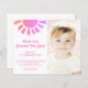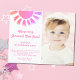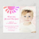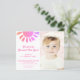 Convide familiares e amigos para a sua primeira festa de aniversário com este belo Convite para Orçamento de primeiro aniversario. É decorado com um sol cor-de-água rosa e diz "Primeira viagem ao redor do Sol!" Facilmente personalizável. Substitua a foto por uma de suas. Perfeito para a primeira festa de aniversário de uma garota. Use a Ferramenta Design para alterar o tamanho, o estilo ou a cor do texto. À medida que criamos a nossa trabalho de arte, não encontraremos esta imagem exata de outros designers. Original Watercolor © Michele Davies.