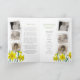 Programa funerário de serviço de dupla face floral primavera amarelo daffodil botânico de aquarelas do programa funerário. Basta substituir o texto de exemplo e os suportes de fotos brancos com estrutura branca e estilo instantâneo e o quadro fotográfico flexível na frente por suas próprias fotos especiais e detalhes de informações. Pintor com aquarela original pintando a arte botânica amarela daffodils e design por Sarah Trett para www.mylittleeden.com (as fotos são apenas imagens marcadoras para você substituir por suas próprias).
