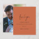 Foto De Roteiro Terracotta Casamento Obrigado. Um alternativo de 4,5 pol x 5,6 pol com preço inferior. Disponível em um STOCK DE CARTÃO SEMI-GLOSS 110 lb, que é a opção padrão (mais espesso para convites), OU um STOCK de PAPEL THINNER FINISH 80 lb FINISH (ideal para gabinetes). Os envelopes são um extra opcional e são ligeiramente maiores que o tamanho da placa. . Um design de tipografia minimalista com um script de estilo de letra de na moda definido para Obrigado. No verso, substitua a imagem por sua favorita do dia como guardiã para seus convidados. Personalize facilmente o resto do texto com sua mensagem e nomes.