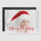 Vermelho moderno e festivo: saudação de script de pincel de Natal feliz com campo de texto editável, filtro branco opaco opcional e modelo de foto.