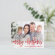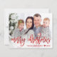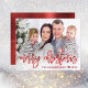Traga alegria à sua família e amigos com um dos nossos cartões de Natal personalizados. Este design moderno apresenta sua foto com uma camada abaixo e saudando em um roteiro vermelho que lê "Feliz Natal" com seu nome e ano para personalizar. A parte traseira da placa tem uma textura metálica vermelha brilhante e falsa. Desenhada pela artista Susan Coffey.