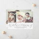 Este simples e chic cartão com fotos de anúncio de 3 fotos de nascimento apresenta uma colagem com uma letra de script caprichosa que destaca sua nova chegada. Note que não se trata de uma folha metálica real e que será impressa em formato plano. Adicione uma foto e detalhes adicionais ao verso. Selecione uma forma recortada, um papel texturizado ou um papel ultra grosso para um convite especial extra.