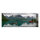 Impressão de fotografia de uma paisagem com dois velhos barcos a remos num lago com reflexo das montanhas no Hotel Hjelle, Hjelle, Stryn, Sogn og Fjordane, Noruega. É uma foto panorâmica, perfeita para decorar sua parede.