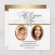 Linda foto de bebê e atual convite para Quinceanera, branco e ouro. Esta doce foto de ouro Quinceanera apresenta uma fita de ouro elegante e arco com quadros de ouro dourados para duas fotos da sua linda filha - uma como bebê e a outra como ela é agora. Personalize este elegante convite para fotos em branco e ouro Quinceanera adicionando suas fotos, detalhes do evento, estilo da fonte, tamanho da fonte e cor e texto.