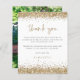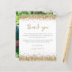 Foto Glitter Dourada Do Orçamento Quinceañera Obrigado. Um alternativo de 4,5 pol x 5,6 pol com preço inferior. Disponível em um STOCK DE CARTÃO SEMI-GLOSS 110 lb, que é a opção padrão (mais espesso para convites), OU um STOCK de PAPEL THINNER FINISH 80 lb FINISH (ideal para gabinetes). Bordas de brilho de ouro falso estão no topo e no fundo na frente e substituem a foto no verso por uma favorita de sua festa. Obrigado, está em um script de escrita manual definido na coordenação do ouro. Personalize facilmente o resto do texto. Você também pode alterar a cor do texto e do plano de fundo por meio da opção personalizar mais, se desejar.