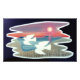 A pair of doves fly seamlessly together in harmony through this picturesque landscape scene with purple and pink sky and lake. doves representing peace, love and unity of two into one.