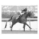 Corrida de inverno na histórica pista de Aqudut, lar das prestigiosas apostas do Memorial da Madeira. Jockey Kendrick Carmouche está no controle de cheio enquanto ele está na liderança com seu poderoso pote de baía Dr. Burt.Black e branco monocromático de ganhar cavalo e cavaleiro. Fleetphotoname
