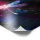 Luminosa, voadora, libélula vermelha, com asas transparentes e detalhadas sobre fundo escuro, noturno, luminoso com plantas tropicais e vagalumes. libélula vermelha.