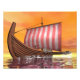 Drakkar ou navio viking flutuando no oceano pelo pôr do sol -3D renderização