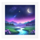 Escape into a tranquil world with this enchanting design featuring a glowing crescent moon, vibrant starlit sky, and a luminous river winding through lush purple and green hills. Perfect for adding a touch of peaceful, whimsical wonder to your everyday items like phone cases, mugs, and home decor. Let this serene landscape inspire calm and beauty in your daily life.