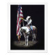 Uma bela fotografia da vaquinha num palomino e cavalo de pintura branco segurando a bandeira americana durante o Hino Nacional no Stampede do Rio Cobra de 2014.