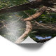 Uma águia-careca adulta fotografada assim que se levanta de um galho, sua impressionante envergadura é evidente.