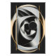 Uma dança de formas geométricas se entrelaçando em curvas e círculos metálicos. A fusão de luz e sombra cria profundidade e movimento, evocando a sensação de um portal abstrato que ressoa com equilíbrio, mistério e sofisticação do eterno.