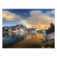 Nuvem envolveu Minaretes brilhantes laranja no sol da ascensão brilhando acima do Lago Ediza. Califórnia, Serra Nevada, Ansel Adams Wilderness, Minarets. Fora da trilha John Muir perto de Mile 049.