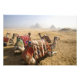 Egito, Camelos de Descanso do Cairo olham através das areias do deserto de Giza para as famosas pirâmides egípcias fora do Cairo � Dave Bartruff / DanitaDelimont.com