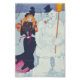 Esta ilustração mostra uma mulher elegante, vestida ao lado de um grande boneco de neve, grosso modo. A mulher é enfeitada em um elegante vestido preto vitoriano, com fritos vermelhos e um muff de pele, e seu cabelo de ouro é enrolado com um chapéu elegante no topo. O boneco de neve tem uma expressão alegre, mas levemente cansado, vestindo um chapéu, segurando uma vassoura, e fumando um cachimbo. O fundo apresenta uma paisagem nevada com árvores estéreis sob um céu azul-céu. A cena tem uma qualidade artística, caprichosa e ligeiramente surreal.
