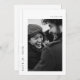 Anuncie seu dia especial com nossa Foto Elegante Minimalista Salvar o Convite de Data. Apresentando um design moderno minimalista com uma bela foto em preto e branco, este cartão é perfeito para casamentos de destino. O layout duplo garante que sua mensagem seja clara e elegante. Ideal para salvar os anúncios de data, este cartão combina sofisticação com personalização.