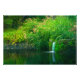 A gentle stream spills quietly into a mirror-like pond, surrounded by vibrant grasses and moss-covered stone. This image captures a moment of pure calm, inviting the viewer to pause, breathe, and drift into the soothing rhythm of nature. It’s a perfect visual escape that evokes peace, balance, and quiet beauty.