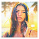 Retrato da Emily. Um pôr do sol com tons quentes numa paisagem de sonho, enquadra a beleza do modelo com um olhar intenso. Tema e técnica inspirados por P. Gauguin. Efeito de pintura criado com computação gráfica, entre arte tradicional e moderna. Pintura digital.
