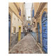 Uma cena encantadora de um beco estreito numa cidade marroquina histórica, com portas coloridas e arquitetura rústica, captando a essência do charme tradicional e do ambiente sereno.