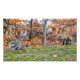 Uma raposa e um guaxinim se perguntam o que fazer a seguir. Fundo da cor do outono.