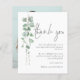 Um valor para o alternativo do ORÇAMENTO em tamanho menor de 4,5 x 5,6" de semirbrilho de 110 lbs, que é de espessura semelhante a um cartão postal (no entanto, não é adequado para uso como cartão postal). POR FAVOR, OBSERVE QUE HÁ UM convite por folha. Foto Eucalyptus Moderna Do Orçamento Obrigado. Estilo moderno minimalista com esta botânica com folhagem de aquarela fluindo para baixo no lado esquerdo e texto para a direita. Um script de estilo manuscrito para Than You e o resto do texto que você pode personalizar facilmente. Substitua a foto da amostra no verso por sua favorita do dia do casamento.