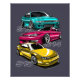 Design do estilo anime que retrata a evolução do chassi da lendária Silvia, a imagem mostra os modelos S13, S14, S15. Perfeito para amantes de carros japoneses e JMD!