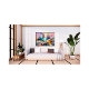 Uma explosão dinâmica de formas geométricas coloridas que irradia do centro, criando uma design moderna impressionante. As corajosas pinceladas e tons vívidos dão a esta peça uma sensação enérgica e artística, perfeita para decoração e moda da declaração.