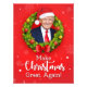 Trump em um cartão de natal de wraith em fundo vermelho com flocos de neve brancos. Faça o Excelente americano de novo e faça o Excelente de Natal novamente um cartão patriótico para os americanos!