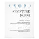 Adicione um toque celeste ao seu bar de casamento com nossa lua minimalista Fases azul celestial Coleção de Casamento Signature Bebe Poster Bar. Esse design apresenta uma estética simples, mínima e nítida, com um pano de fundo branco limpo que permite que os elementos celestes se sobressaam. Centradas no topo do poster estão as cinco fases da lua exibidas em uma bela cor azul clara, adicionando um toque de beleza celeste ao design. O texto no poster é uma mistura de fontes de blocos de cinza de luz e fontes de script azuis, criando um aspecto harmonioso e visualmente atraente. Essa design é perfeita para casais que amam temas celestes, céu noturno, astronomia ou as fases da lua. Quer você esteja planejando um casamento com temas celestes ou simplesmente apreciando a elegância desta design, esta poster é uma bela adição à sua decoração de casamento. Use a poster para mostrar suas bebidas de assinatura no bar, adicionando um toque pessoal e na moda à sua recepção de casamento. O design minimalista e limpo desta poster, facilita a coordenação com a sua outra papelaria de casamento, criando uma aparência coesa e bonita para o seu dia especial. Convide seus convidados a desfrutar de uma bebida inspirada no celeste no seu bar de casamento com nossa Lua Minimalista Fases Azuis Celestial Assinatura de Casamento Beba Poster Bar. É a maneira perfeita de adicionar um toque de beleza celestial à sua celebração de casamento.