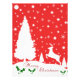 Feliz Natal Flocos De Neve Vermelho E Branco Trabalho de arte de Natal Feliz Representando Um Fundo Vermelho Com Estrelas Brancas Com Árvores De Natal E Um Veado Rançante Em Terra Coberta De Neve. Acentuado Com Holly E As Palavras Feliz Natal.