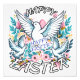 Felz pascoa! com uma imagem alegre e colorida de primavera, com pombos e flores.