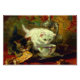 Foto Impressão com a pintura a óleo de Henriëtte Ronner-Knip High Tea (1821-1909). Um gatinho branco e fofo bebe de um teacup e uma tábua borbulha uma massa numa bandeja de chá. Um presente perfeito para amantes de gatos e entusiastas do Romantismo.