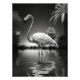 Majestoso flamingo alto em uma piscina com fundo tropical e de verão. A composição lúdica cria um senso de alegria e relaxamento, evocando memórias de dias quentes de verão. O belo e delicado flamingo adiciona um toque de elegância e graça à peça.